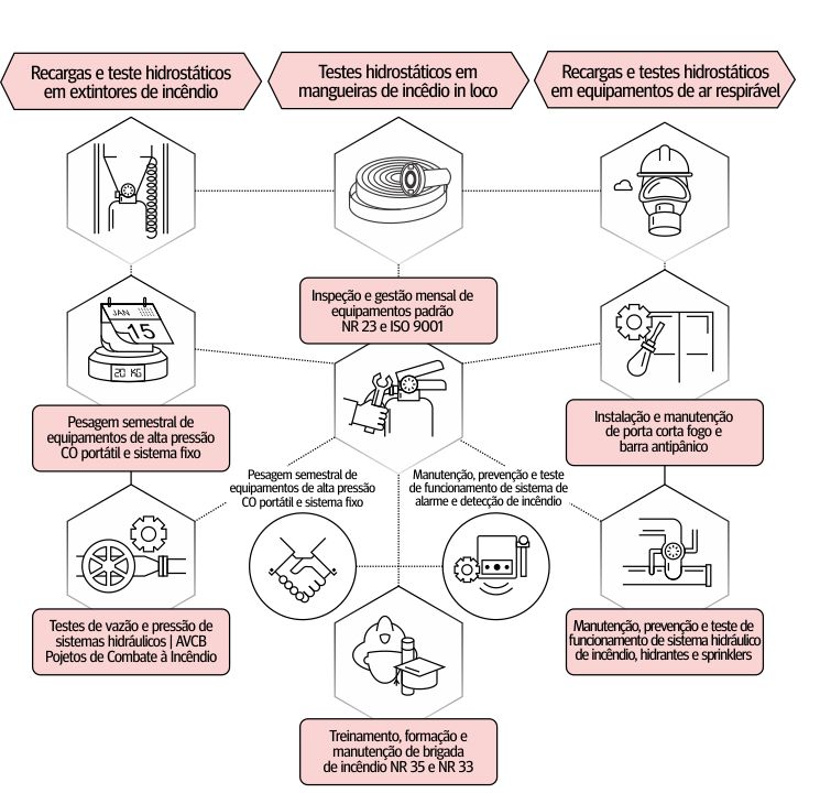 Serviço totalmente realizado conforme NR 23 do MTB e Novo Decreto 56.819/2011 Corpo de Bombeiros do Estado de São Paulo ou Conforme decreto do Estado de Localização da Contratante.